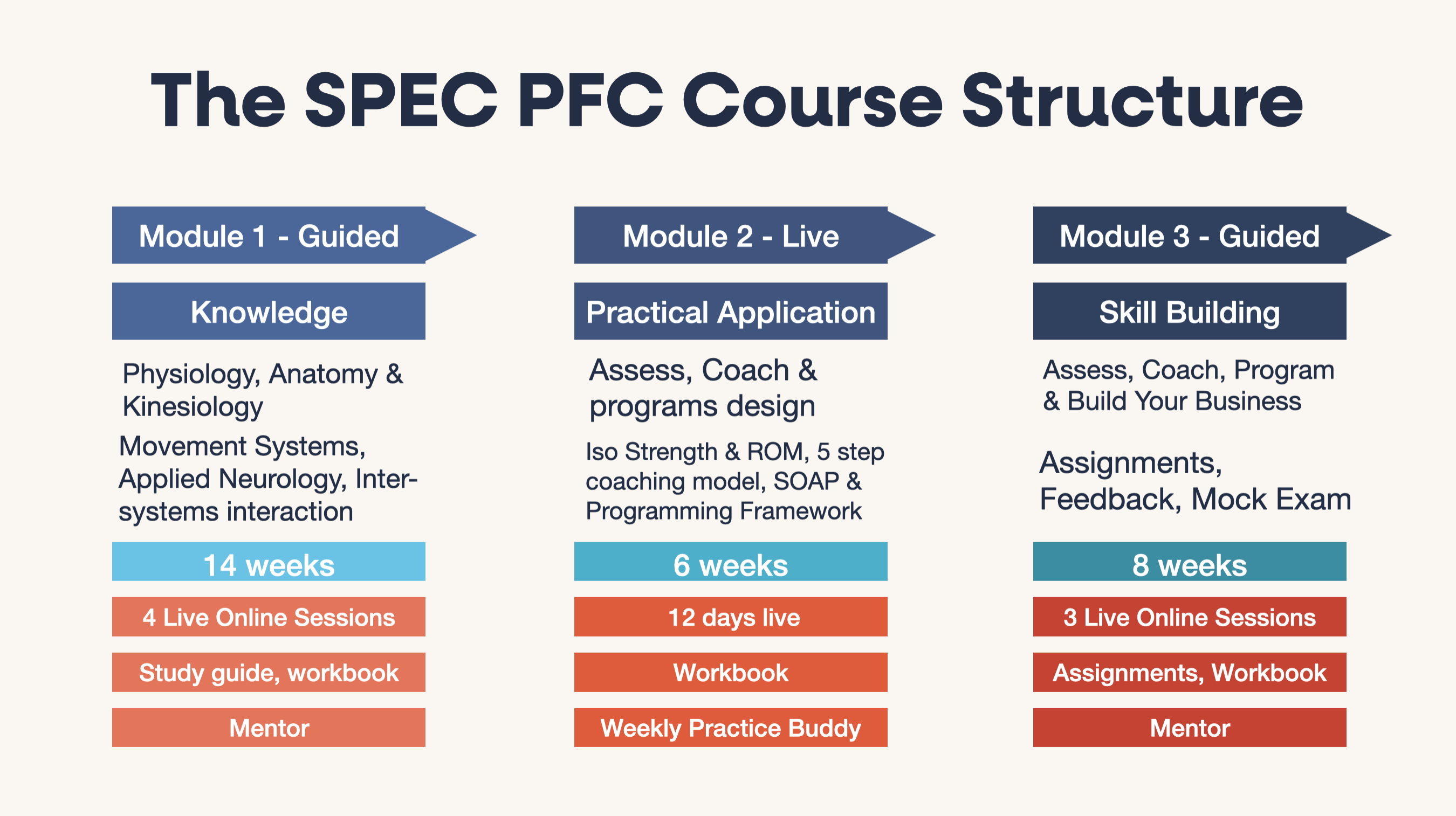 This is the first step in understanding the SPEC Training System. We've had pharmacists, designers, marketers, physiotherapists, and seasoned coaches go through the program and graduate with flying colors.